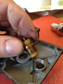 Having removed the 13mm blanking plug, I'm unscrewing the main jet (step 09 in the guide).