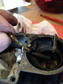 Unscrewing the fuel cut-off solenoid (after using a spanner to loosen it of course), I intend to test it with my bench PSU (step 06 in the guide). |