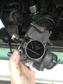 Undo the 2 nuts holding it to the engine, unplug the 2 electrical connections, detach the throttle cable and it lifts free, quite straighforward really. |