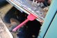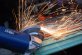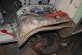 Forcing the drilled-out spot welds apart with a chisel.. |